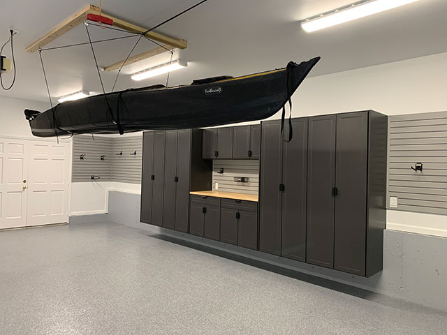 Our storage system designers are available to offer expert advice and design your custom storage solution. We also have a professional installation team to get your garage cabinets, slatwall panels, and overhead storage racks installed. Rather do the installation yourself? We have solutions for those needs as well.